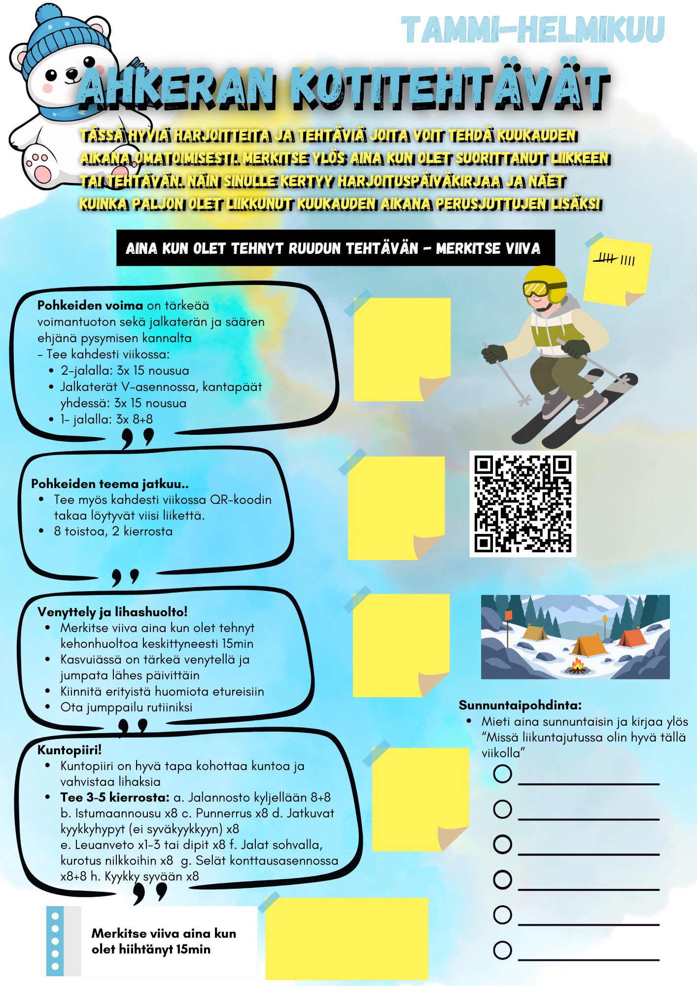 Tammi-helmikuun kotitehtävät yleisurheilukouluille